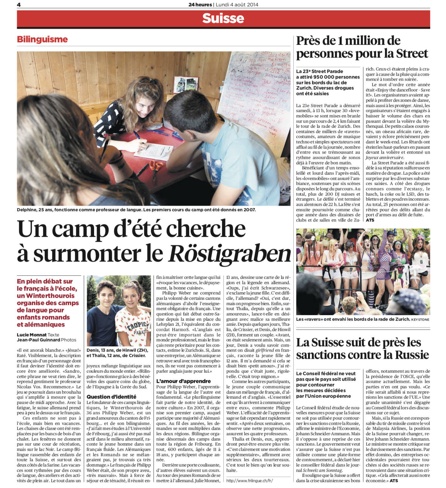 Natürlich komme es auch bei friLingue vor, dass Jugendliche aus unterschiedlichen Sprachregionen manchmal auf Englisch wechselten, um sich zu verständigen. Das findet Weber aber nicht schlimm. «Wir verstehen uns nicht als Schule, sondern wollen Freude an den Sprachen wecken.» Weber selbst verwendet nicht nur Deutsch und Französisch im Alltag, sondern auch Englisch und Portugiesisch. Als Auslandschweizer lebte er zehn Jahre in Brasilien und hat einen brasilianischen Sohn – der Schweizerdeutsch spricht. «Sprachkenntnisse ermöglichen es, andere Kulturen und Denkarten zu lernen und zu verstehen», sagt Weber. «Damit eröffnen sich neue Horizonte.»
